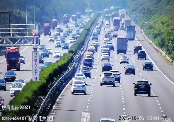 下午开始,杭甬高速上双向大流量,返程趋势明显。本文图片由宁波交警提供