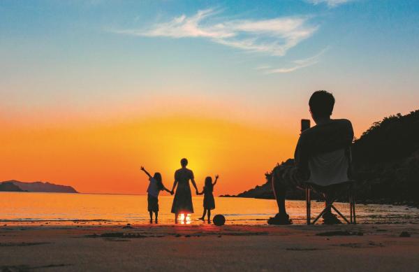 我们在一起,浪漫的从来不是日出,而是齐齐整整看日出的一家四口。谢忠飞/摄