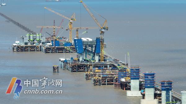 据项目副经理张伟介绍,截至目前,海上方面,海中引桥钢管柱完成1512根,钻孔桩完成259根,承台完成55个,墩身完成48个;南航道桥钻孔桩完成148根,主墩承台完成2个,边墩完成1个,160主塔完成8节,159主塔完成3节;浅滩区钻孔桩完成1195根,承台完成175个,墩身完成170个;陆地段方面,慈溪特大桥A段钻孔桩完成3276根,承台完成294个,墩身完成257个,现浇简支梁完成1榀,连续梁完成2联。