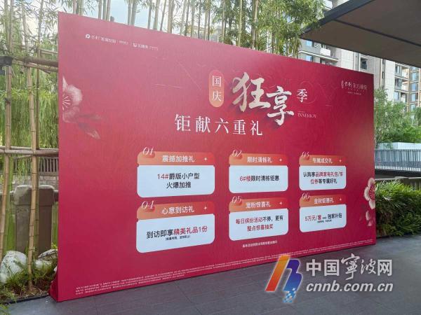 这个楼盘,就是位于鄞州仇毕板块的保利发展·汀澜瑧悦府。在售楼处显眼位置的巨幅海报上记者看到,本次双节长假期间,该楼盘不仅加推了105平方米和118平方米的小户型,准备了个别楼幢清栋优惠及到访礼品、整点抽奖、认购礼包等,还特别设置了5万元/套(税前)的独家补贴,可谓火力全开。