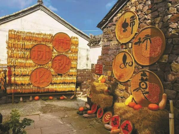 在余姚大岚镇丹山赤水景区,柿林古村的秋日被赋予了新的生命。传统的“晒秋”活动被创意升级为一场立体的艺术体验。景区用柿子、红辣椒、玉米、南瓜等丰收的农作物,精心打造出巨型的晒秋艺术墙,并结合村落空间,布置了多处迷你晒秋点,形成了“一步一景、随处可拍”的沉浸式场景。