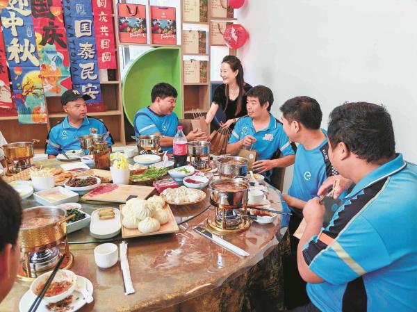 快递员享受家宴。(通讯员供图)