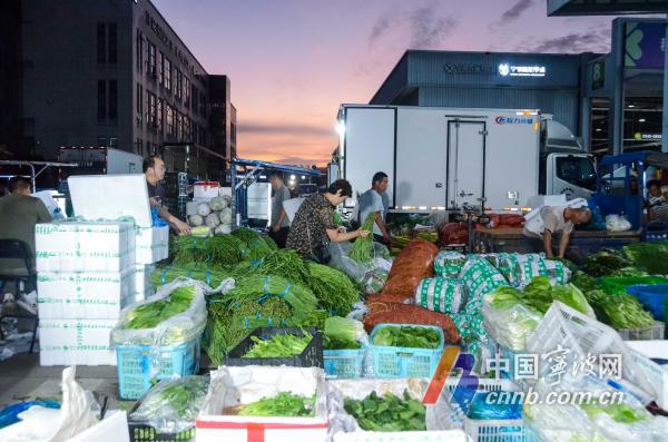 以产自云南的空心菜为例,从保供基地采摘后,空心菜会被放入泡沫箱中,压上冰块、打上冷气,紧接着整齐码放在冷链车内,在0至5℃的冷藏环境下前往宁波。半夜抵达宁波后,这一批批空心菜基本在当天就能销售一空。