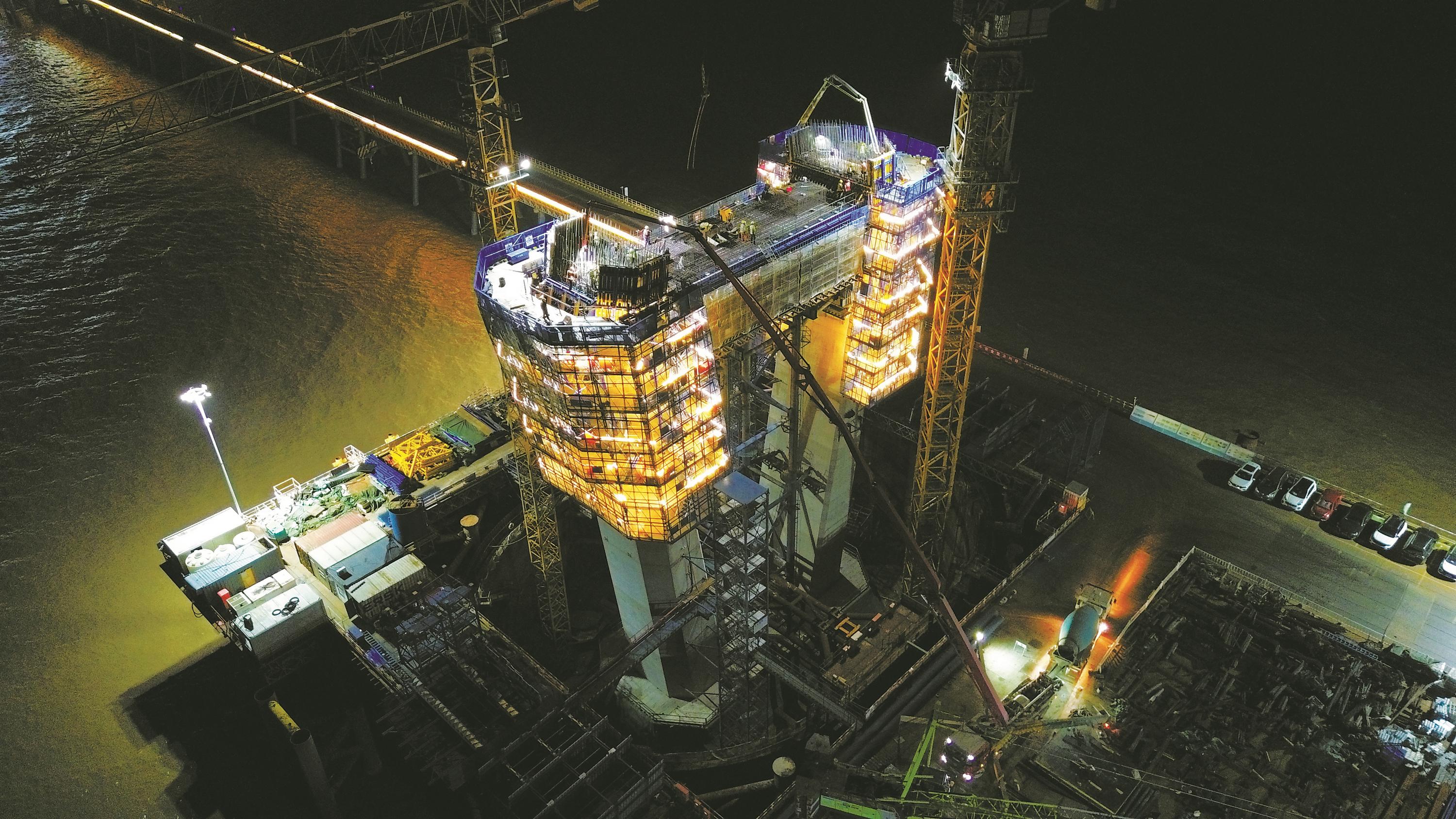 杭州湾跨海铁路桥南航道桥施工现场。通讯员供图