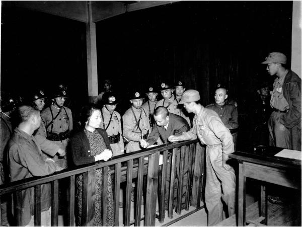 1950年6月,朱枫、吴石等人在国民党的军事法庭上(资料图片)。 冯亦同供图