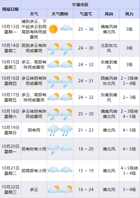 从市气象台10月12日发布的预报看,从10月13日下午开始,我市局部地区就会下阵雨或雷雨;之后,阵雨或雷雨天气一直延续;等到10月18日,冷空气捎来明显的降温、大风和降水天气,或许将成为今年桂花季的“发令枪”。