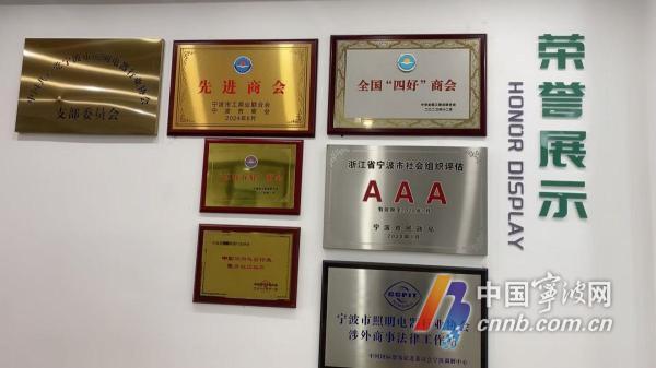 宁波市照明电器行业协会荣誉展示。王明开 供图