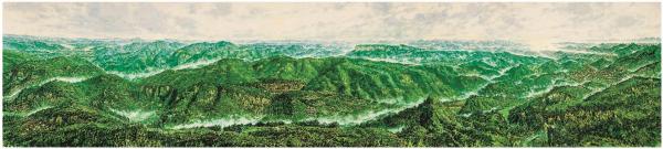 许江:前年我就为宁波创作过一幅以四明山为主题的作品,名叫《千山奔海图》,这幅画长18米、高4米,目前陈列在宁波国际会议中心。