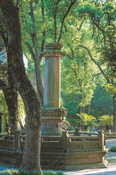 保国寺矗立的唐代梅园石经幢。(保国寺古建筑博物馆供图)