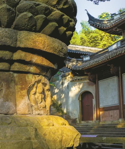 保国寺藏经楼石廊柱。(保国寺古建筑博物馆供图)