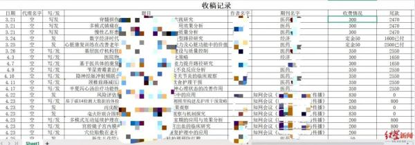 记者卧底的中介机构某员工记录下的近期收稿情况