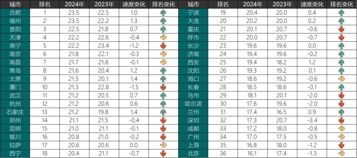 《报告》显示,截至2024年第四季度,宁波中心城区建成区的平均道路网密度为7.2公里/平方公里,较上一年度增加0.1公里/平方公里,排在全国36座主要城市第12位,和上一年排名持平。