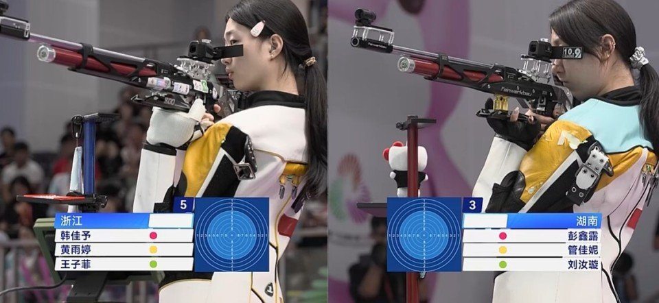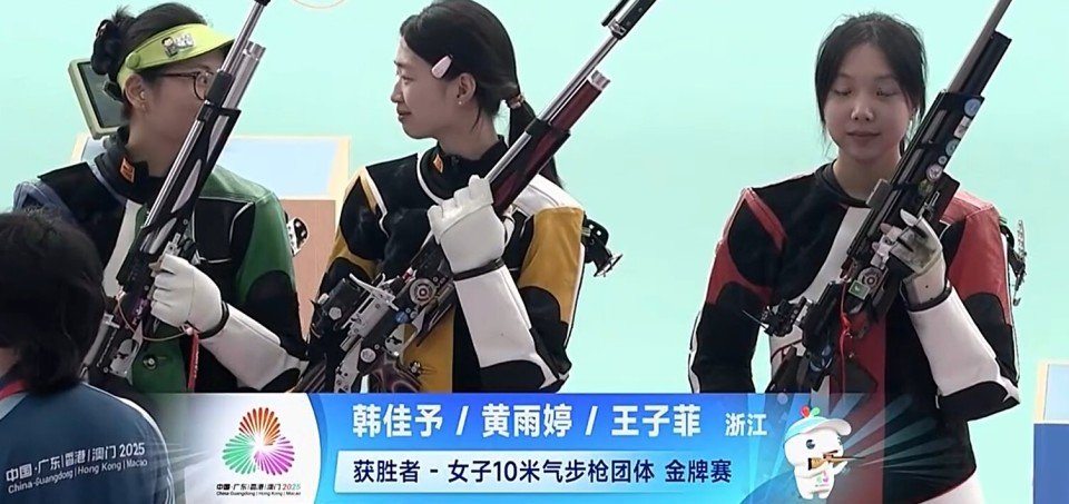 晋级决赛的浙江队阵容堪称豪华,三位选手分别为世锦赛冠军韩佳予、巴黎奥运会女子10米气步枪亚军黄雨婷、以及今年三站世界杯冠军及资格赛世界纪录保持者王子菲。对手湖南队管佳妮、刘汝璇、彭鑫露的实力同样不容小觑,尤其是16岁小将彭鑫露,上个月刚刚夺得宁波射击世界杯的冠军。决赛现场,中国射击名宿王义夫也赶来观战。