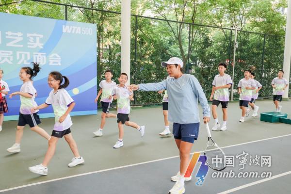 该校初三学生、网球队代表潘一诺作为学生代表发言。“姐姐的球很稳,步伐每个垫步都很到位,挥拍动作一致且能随机应变。”潘一诺现在是初三学生,她希望学业和网球能平衡得更好一些,也想未来“和蒋姐姐一样”,能站上WTA的赛场。