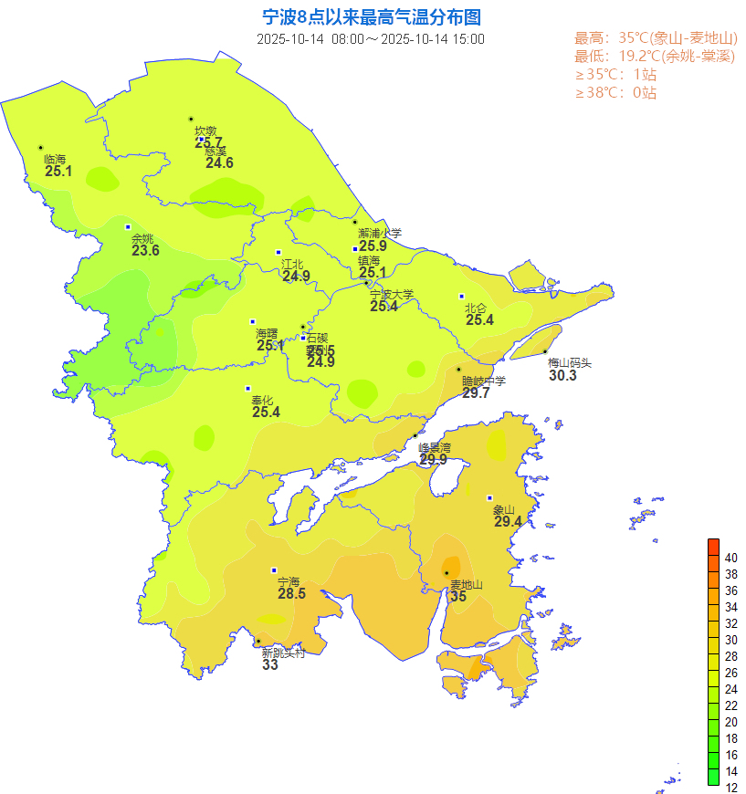 据监测数据显示,今日全市代表站最高气温仅29.4℃(象山站),未能突破30℃大关。结合10月9日至13日连续5天最高温超30℃的记录,这次降温着实令人欣喜——我们真的要与持续多日的高温告别了。