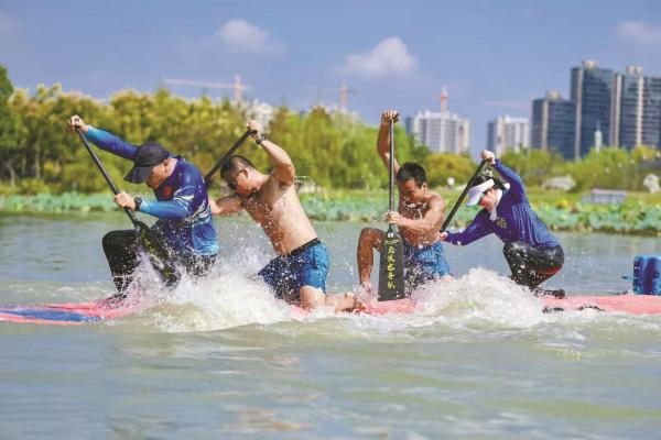浙江省第五届体育大会桨板比赛近日在温岭市落幕。此次赛事共设置13个竞赛小项,来自全省的10支队伍、200多名选手逐浪挥桨,宁波代表队表现出色,勇夺4金3银3铜。