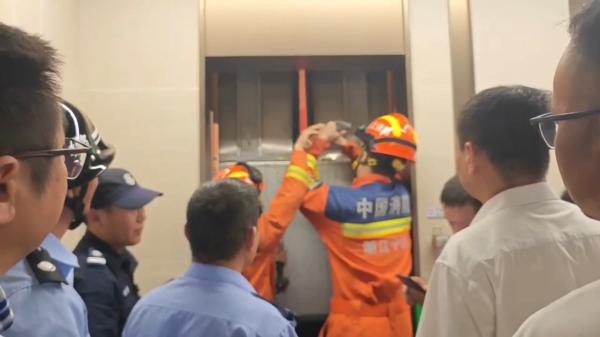 在小区物业人员的协助下,消防员迅速来到了小区9幢。经现场勘查,电梯被困在一层和二层中间,电梯因负载超出额定重量且运行至中途时电路接触不良,触发安全保护装置停止运行,电梯门无法正常开启。内部通风情况良好,暂未出现人员身体不适。