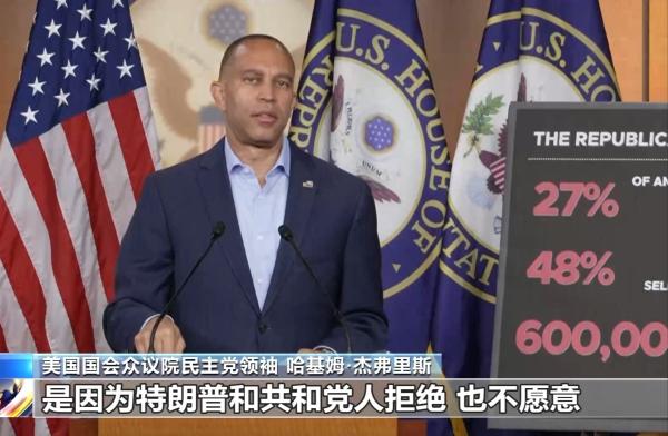 美国国会众议院民主党领袖哈基姆·杰弗里斯则表示,政府目前处于“停摆”状态,是因为特朗普和共和党人拒绝、也不愿意为美国工薪阶层提供医疗保健。
