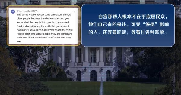 有网友批评称:白宫那帮人根本不在乎底层民众,他们自己有的是钱。可受“停摆”影响的人,还等着吃饭,等着付各种账单。