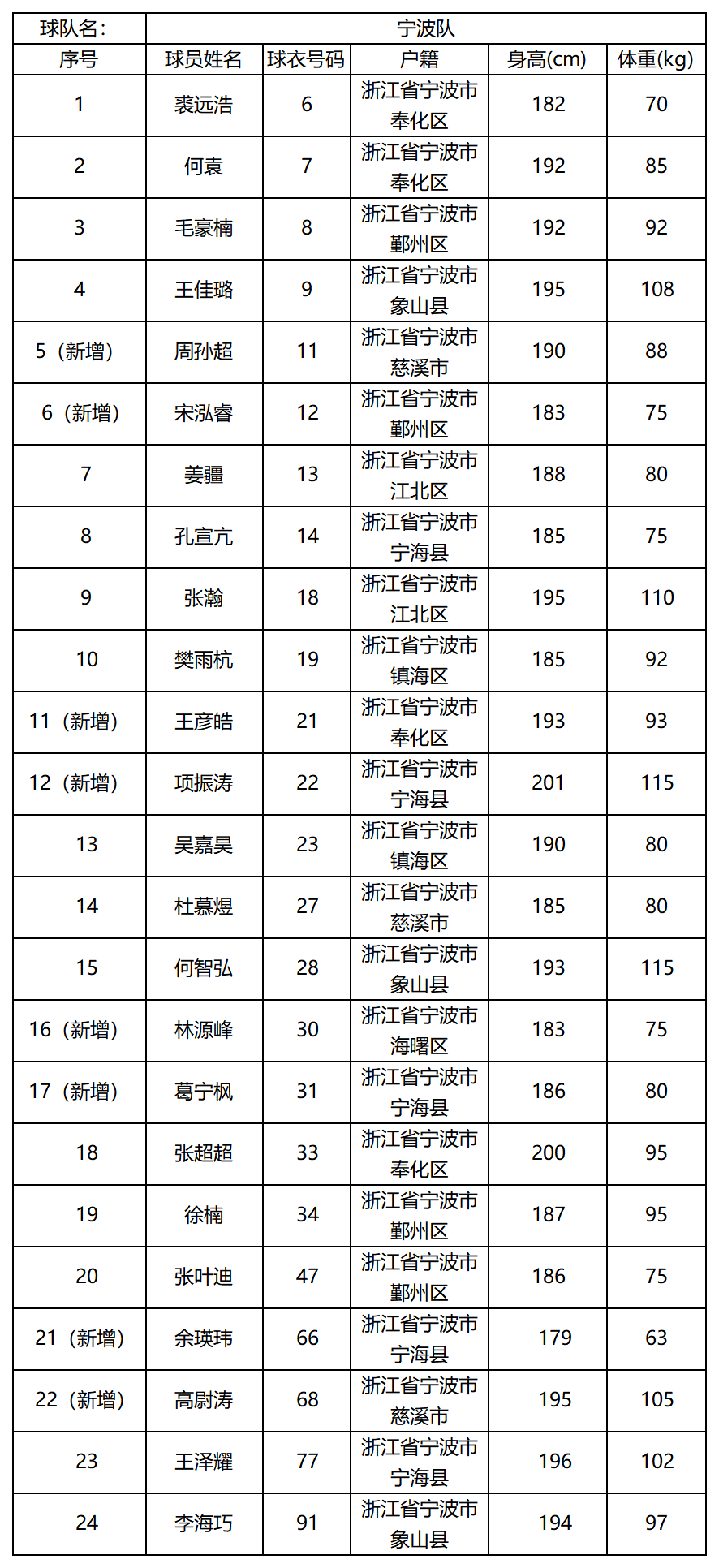 日前,浙江省篮球联赛组委会办公室公布“浙BA”城市争霸赛阶段调整后的各参赛队大名单,宁波队、余姚队迎来新成员。