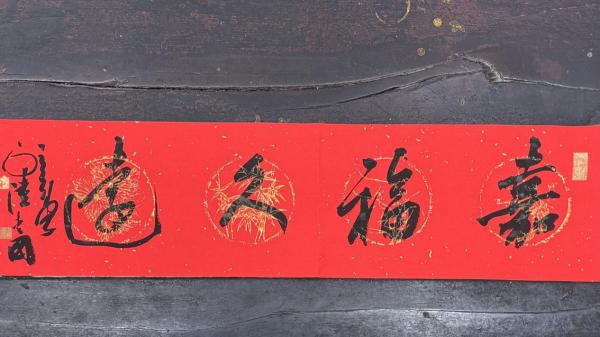 内容:“嘉福久远”,落款:“三合堂主人陆爱国”。