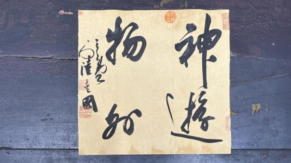 内容:“神游物外”,落款:“三合堂主人陆爱国”。