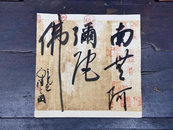 内容:“南无阿弥陀佛”,落款:“三合堂主人陆爱国”。