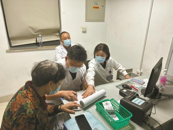 费锦萍(右一)在门诊中。