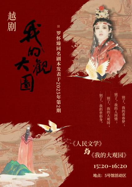 10月25日《人民文学》创刊纪念日当天,读者可前往摊位参与《人民文学》76周年生日祝福视频现场录制,共诉与文学的不解之缘;10月26日15:20-16:20,陈丽君主演越剧《我的大观园》剧本作者罗怀臻的创作分享会将亮相5号馆活动区,深度解读文学与舞台艺术的融合之道。其间,《人民文学》主编、茅盾文学奖得主徐则臣将与嘉宾们参与有关活动。