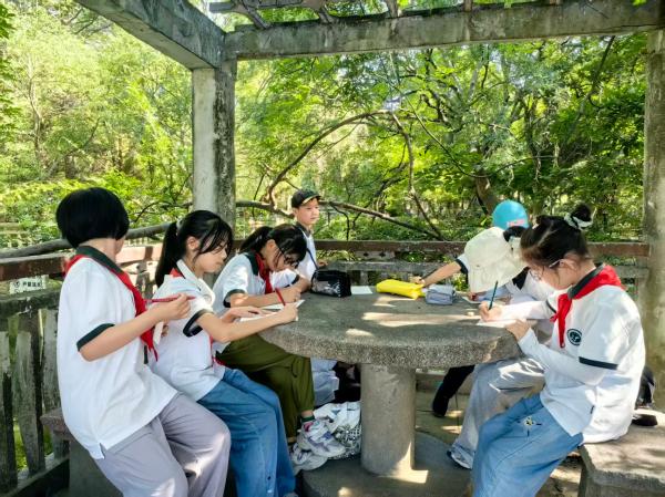 孩子们在大自然里写童诗。