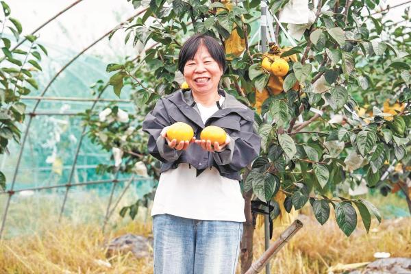 昨日,在江北区慈城镇王家坝村的晨源灵芝专业合作社的果园里,一排排低矮的柿树上果实压枝,青黄透亮的甜脆柿已成独特风景。据合作社负责人罗幼君介绍,园内700余棵柿树今年预计可收获1.7万公斤果实,产量较去年稳步提升,目前正是大量上市的时候。(甬派客户端宁波日报记者陈结生 通讯员方舟 周瑛华 文/摄)