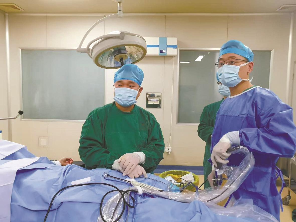 任甜甜(右)正在为患者做手术。