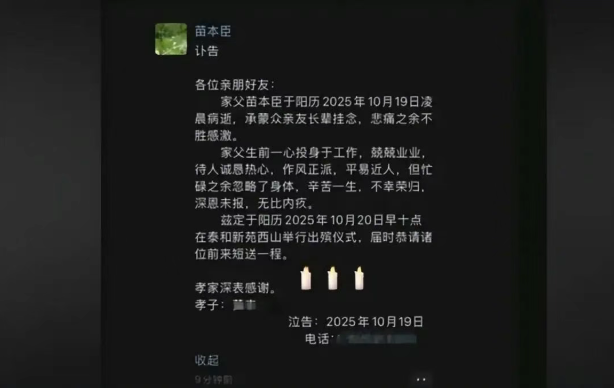 据极目新闻报道,因“被学生抢鸡排梗”走红网络的济南市里仁学校校长苗本臣,被传10月19日凌晨突然病逝。10月21日上午,记者从校方确认了这一消息。