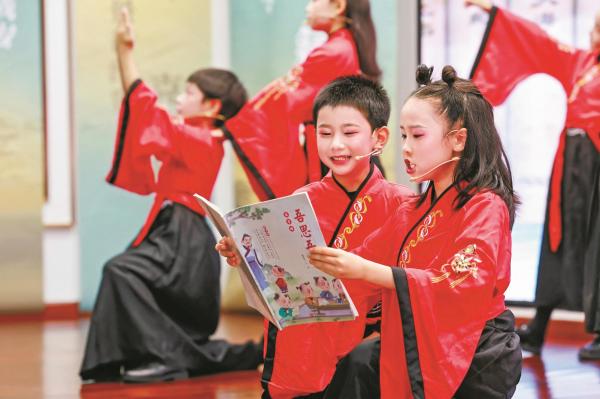 鄞州区五乡镇中心小学的《三字经》表演。(王博 邬晨平 摄)