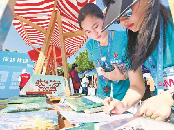 鄞州区明楼街道组织“我陪孩子读经典”活动。(王博 陈梦妤 摄)