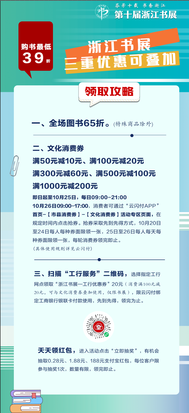 10月24日至26日,第十届浙江书展将在宁波国际会展中心举行。本届书展为读者送上实实在在的福利!