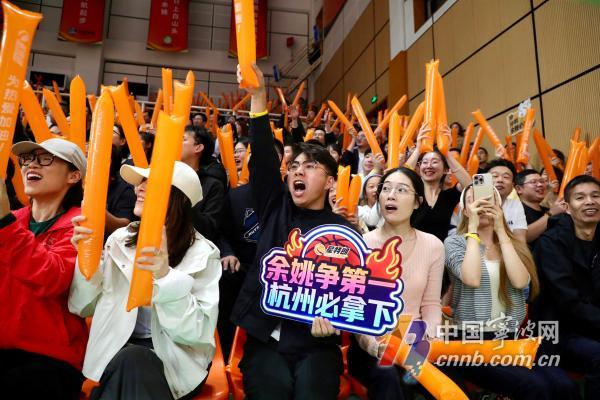 第二节,余姚队徐振凯顶着防守投中三分,将分差缩小到3分,随后余姚队马翔宇在24秒进攻时间命中压哨两分,点燃了主队球迷的热情,也让余姚队紧紧“咬”住比分。本节后半段,余姚队张凯登场,引发球迷的阵阵欢呼,而张凯也用三分球回应球迷。半场战罢,余姚队27:36杭州队。