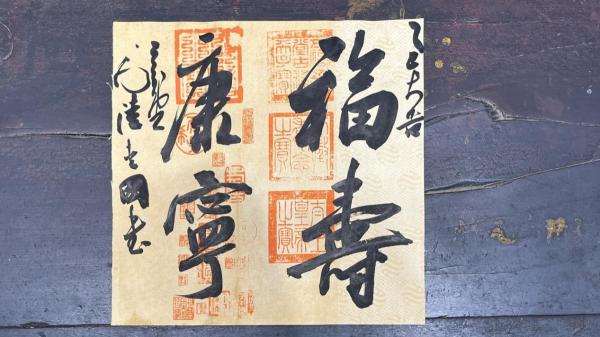 内容:“福寿康宁”,落款“乙巳大吉,三合堂主人陆爱国”。