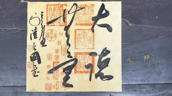 内容:“大德无量”,落款:“三合堂主人陆爱国书”。