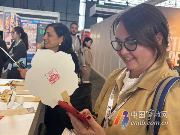 联合国难民署采购官员Rania Chengane小心翼翼地印了一张书签,又收藏了一把扇子:“很想去趟中国,到宁波这座城市里走走看看,亲眼见识下印章上的宁波天一阁。”