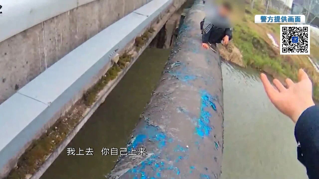 奉化区公安分局西坞派出所副所长 王磊:就是蹲在水管上,高度落差确实很高,我当时第一时间对他的情绪进行安抚,让他的情绪高点慢慢缓下来。