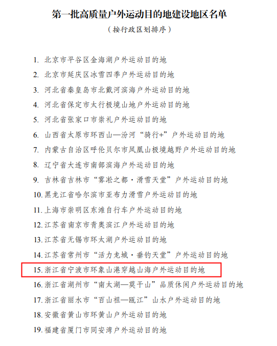 此次入选国家级高质量户外运动目的地,不仅是对象山、宁海户外运动发展水平的高度认可,也标志着宁波全域户外运动发展开启新篇章。