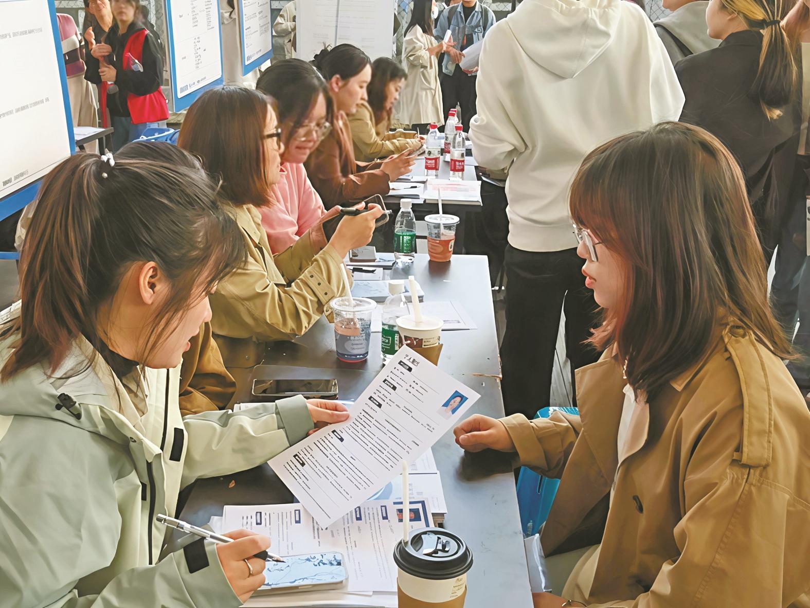在招聘会现场,宁波工程学院两位大四学生分享了他们的就业观念和职业规划。