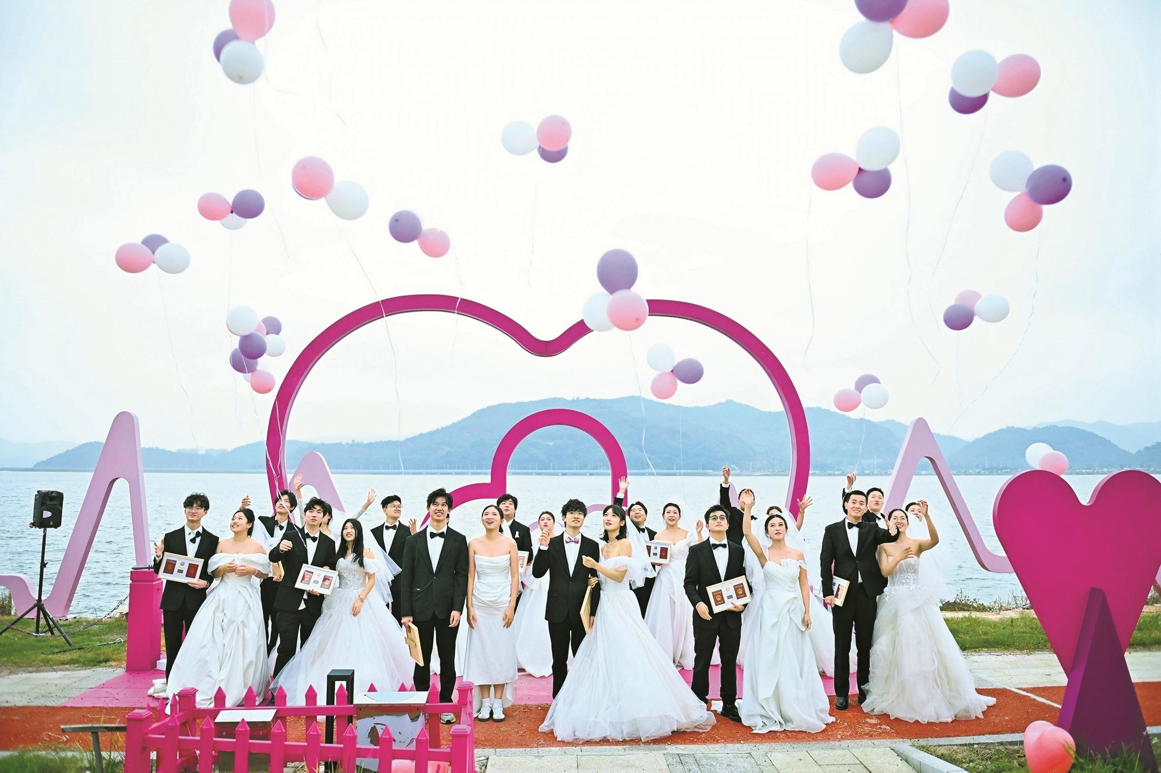 图为集体婚礼现场。(陈章升景士杰李玉姣摄)