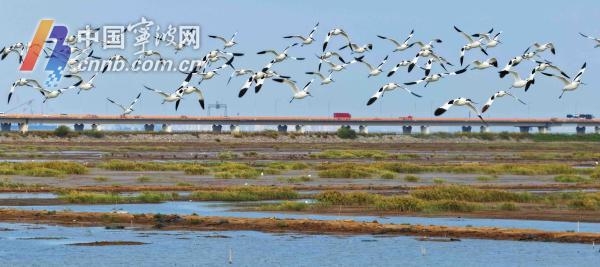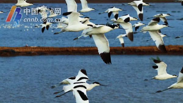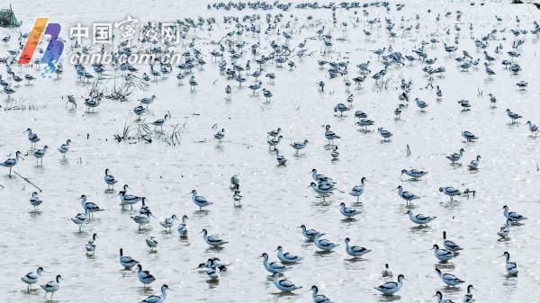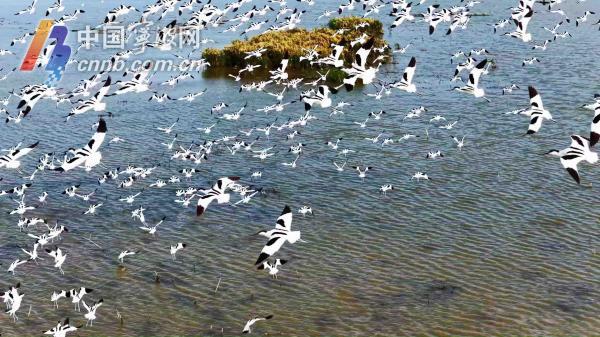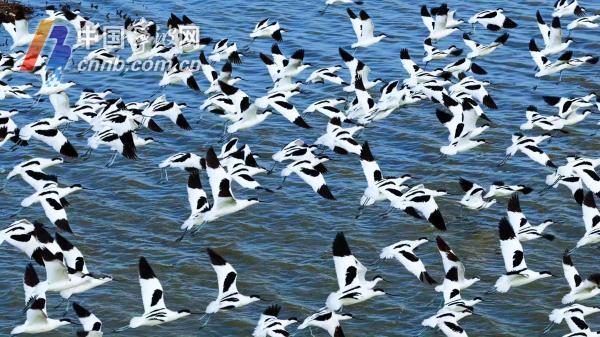 洁白的反嘴鹬掠过浅滩啄食底栖生物,灰褐色野鸭浮水嬉戏……群鸟起落间,与水草丰茂的湿地、澄澈的近岸水域织就共生图景。
