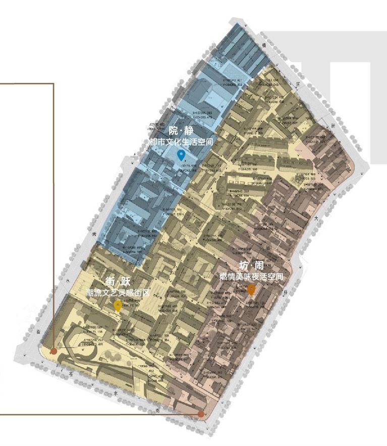 在秀水街历史文化街区早前公开的规划方案和招商手册中,该街区大致自秀水街(永丰巷)一侧向大桥街一侧,依次排布规划都市文化生活空间、潮流文艺灵感街区和燃情美味夜活空间三大板块。