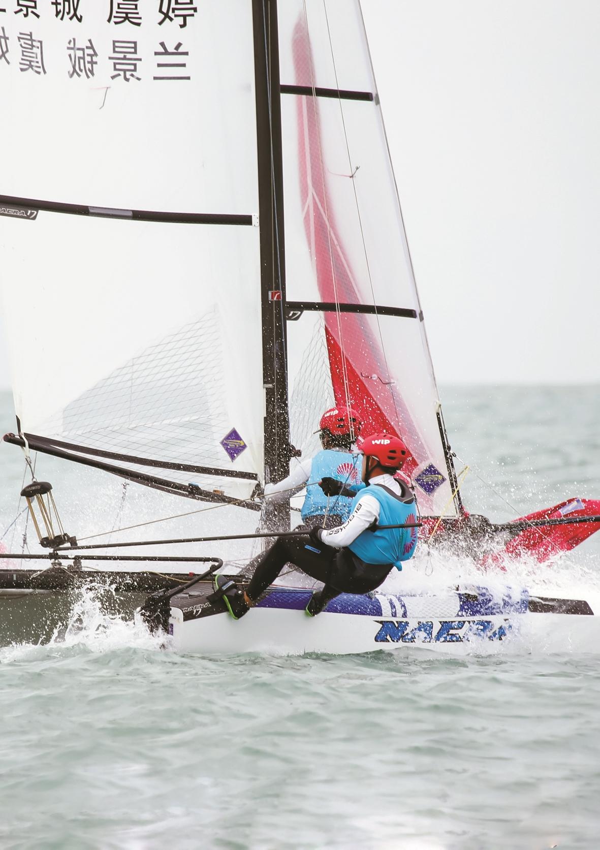 昨天下午,第十五届全运会帆船比赛在广东汕尾结束。宁波运动员虞婷和搭档兰景铖组合代表浙江队在混合诺卡拉17级比赛中位列第一,为浙江代表团斩获一枚海上项目金牌,这也是宁波运动员在本届全运会竞技项目上获得的首枚金牌。另一位宁波运动员王晶和搭档王兰心配合,获得混合470级帆船赛铜牌。