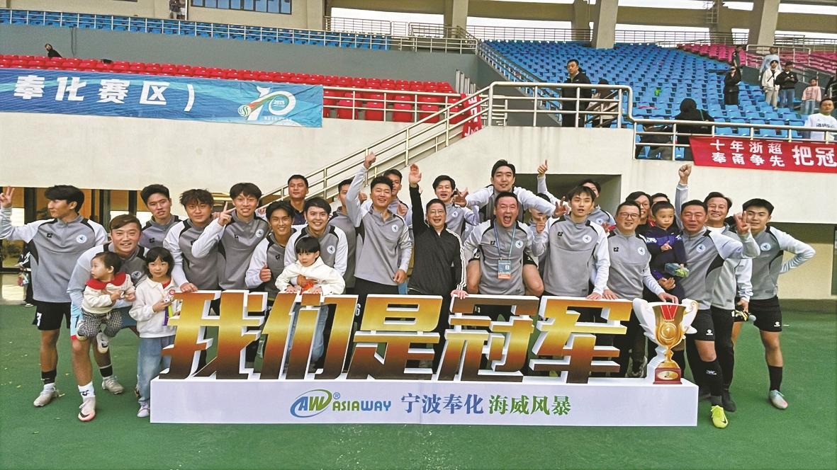 奉化海威风暴队庆祝夺冠。记者戴斌摄