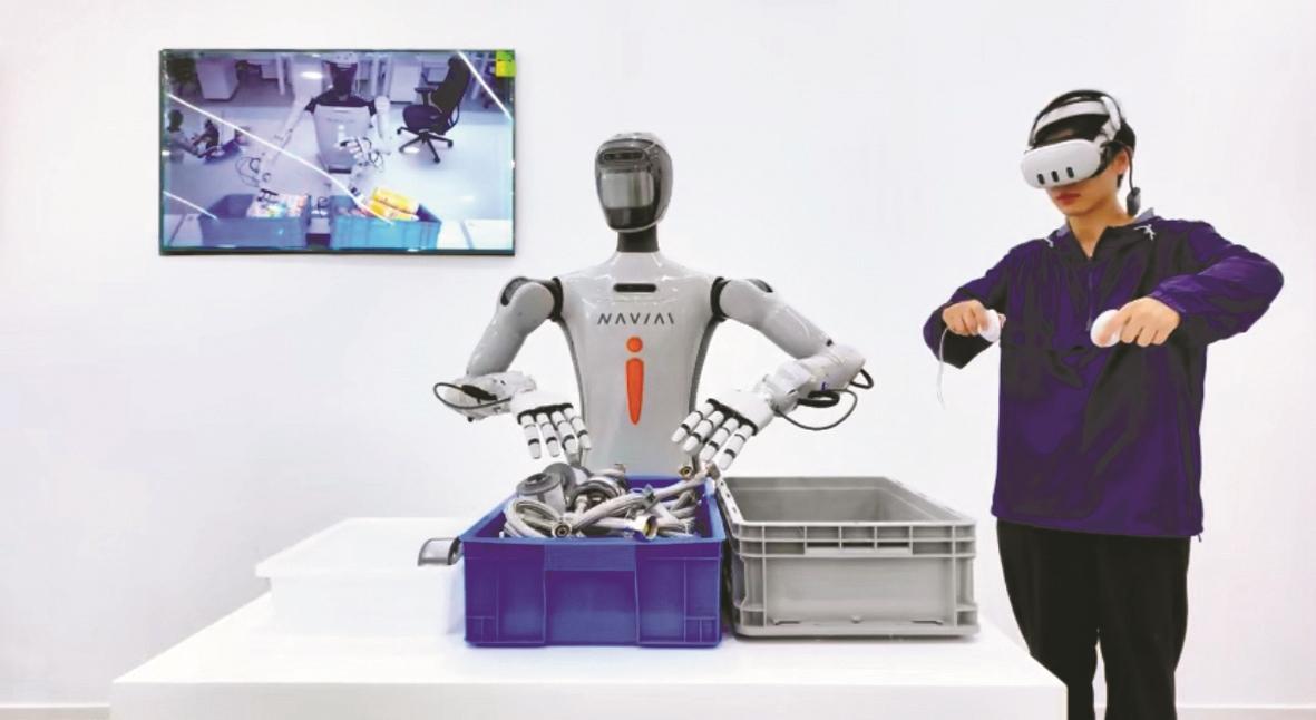 “我们对人形机器人的‘岗前实训’,采用VR遥操作技术,通过VR设备捕捉工作人员的动作,再将它转化为控制机器人运动的指令,使之不断学习人类的行为模式,提升‘举一反三’的泛化作业本领,掌握更多为人类服务的技能。”该公司市场经理洪映映介绍。