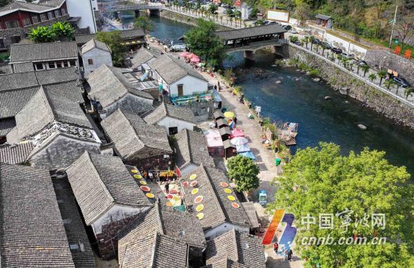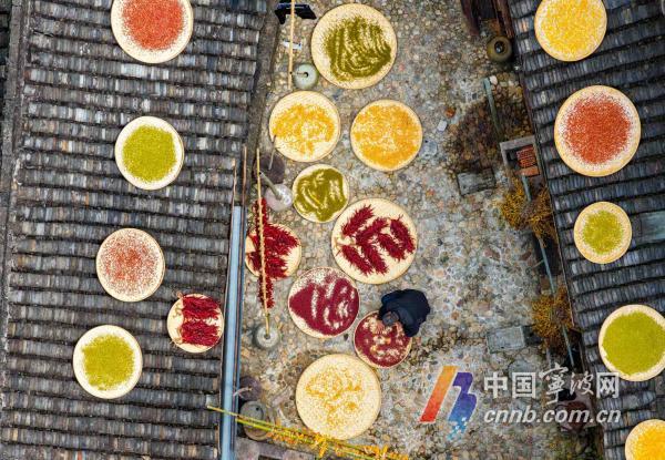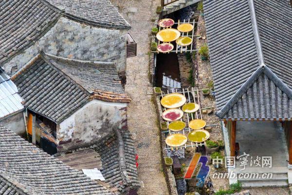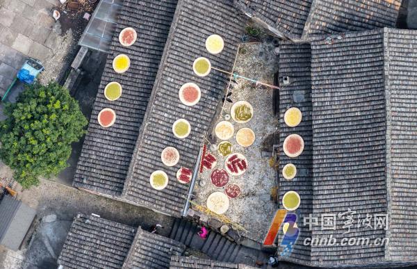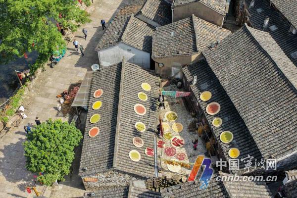 金秋时节,海曙区章水镇李家坑村处处洋溢着丰收的欢腾。村中枝头缀满熟透的吊红,鲜艳的橘红色点亮了山野。家家户户的房檐下、古老的廊桥旁、潺潺流淌的小溪边,铺展开一幅幅生动的"晒秋图"。